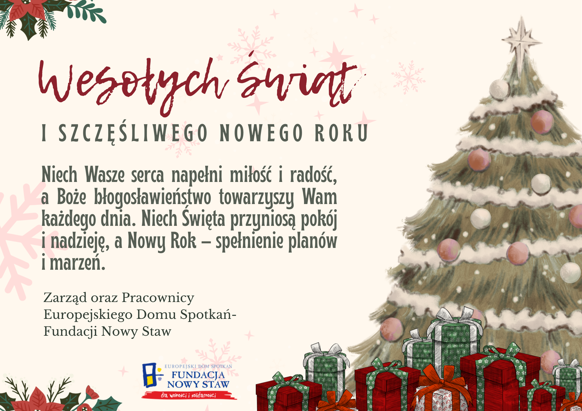 Życzymy Wesołych Świąt Bożego Narodzenia i Szczęśliwego Nowego Roku.